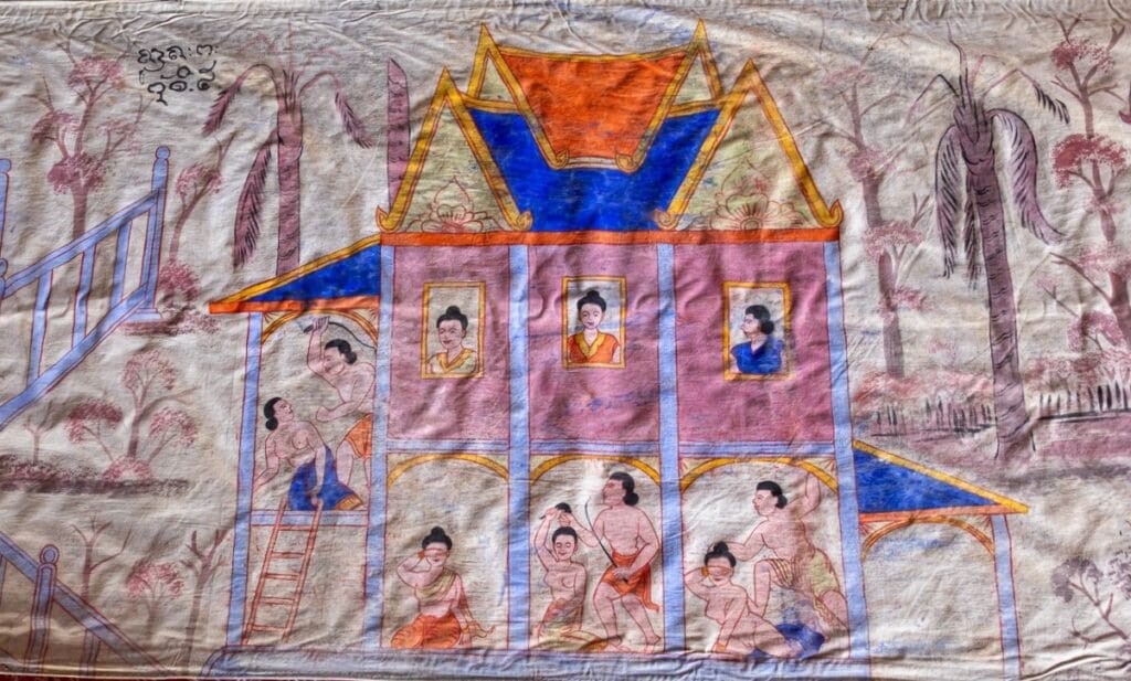 ผ้าพระเวส วัดสีริไชโย บ้านท่าซะโน สปป.ลาว
