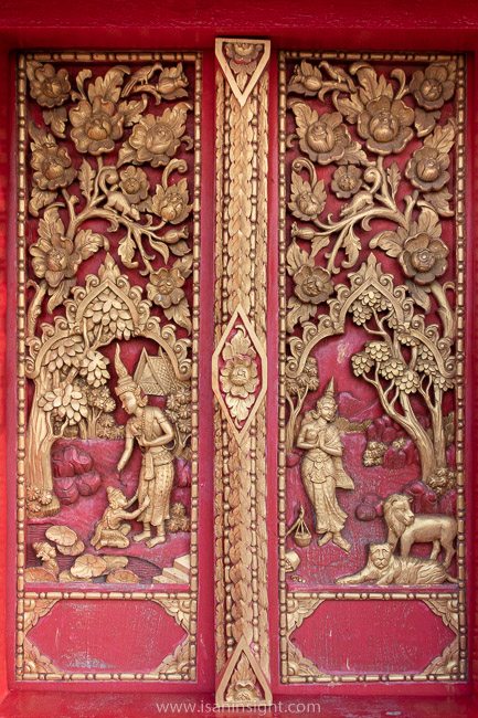 พระเวสสันดรและทศชาติชาดก: ภาพแกะสลักไม้ ชั้น 7 พระมหาธาตุแก่นนคร วัดหนองแวงพระอารามหลวง